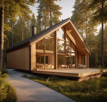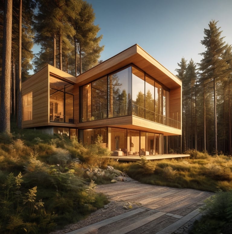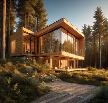 (Ideales Bild: Eine Detailansicht, die moderne, nachhaltige Bauweise zeigt (z.B. Holz, Solarpaneele, Dämmung, KfW-Gebäude).)